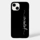 Girly Simple Minimalist Black Monogram Namn Namnteckning Script Anpassningsbar Personlig iphone case. Den här designen som innehåller ditt första namn i ett söt-handskrivet stil-dekortecken i svan namnteckning typografi i vitt på svart bakgrund. Dessa är lätta att anpassa. Underbar snyggt feminin present till födelsedag, mor dag, söt 16 födelsedagsfest, för studentfest och det är för flickan som kärlek är unik snyggt sak.