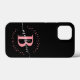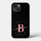 Girly, elegant, trendig, modern, rosa och svart, vit, första namn-manusskript anpassningsbar personlig monogrammad iphone case. Med ett inledande mongram och ett giftigt namn-skript i ett handskrivet calligraphy-tecken byts svan-typsnitt ut och den prickade cirkeln ram runt ditt monogram på svart bakgrund.