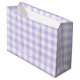 Pastellflickans lila eller lavender gingham eller buffalo la en stor storlek presentväska i mönster. Anpassa pastellbakgrunden färg eller storleka på den sömlösa mönsterbilden. Du kan överföra den sömlösa plattbilden med gingham till andra gåvor. Nyfödd bebis-flickpresentfigursättning.