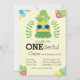 Hon är söt och roligt, din lilla flicka blir en! Fira hennes första fantastiska födelsedag med den här söta ananas temainbjudan. Har en ljusbakgrund med en giftig ananas i solglasögon. Hörnen dekoreras med färgstarka blommor. Clipart by TheHappyGraphics.