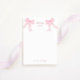Girly bridal shower thank you card featuring light pink bows and elegant fonts in which all your personalized information is written. You can find matching products from this collection in our store.