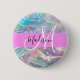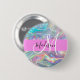 Girligt regnbåge, holografisk iravcent monogram namn och initialknapp. Ditt eget namn och monogram är skrivna i ett skript med elegant och rosa bakgrund. En perfekt födelsedag eller julklapp!