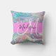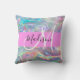 Girligt regnbåge, holografisk iravcent monogram namn och första dekorativ kudde. Ditt eget namn och monogram är skrivna i ett skript med elegant och rosa bakgrund. En perfekt födelsedag eller julklapp!