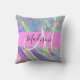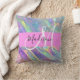 Girligt regnbåge, holografisk iravcent monogram namn och första dekorativ kudde. Ditt eget namn och monogram är skrivna i ett skript med elegant och rosa bakgrund. En perfekt födelsedag eller julklapp!
