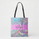 Girly Rainbow Holografik Iridescent Monogram Namn Tygkasse