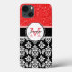 Girly, Red, Glitter Black Damask Personlig