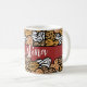Girly Red Playful Animal Print Hearts Namn Kaffemugg