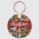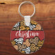 Girly Red Playful Animal Print Hearts Namn Nyckelring