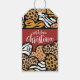 Girly Red Playful Animal Print Hearts Namn Presentetikett