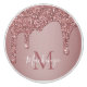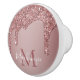Girly Ro Guld Gnistra Glitter Drips Round Drawer Knob med mode faux rosa/ro guld glitter droppar i chic på anpassningsbarnas bakgrund med namnens monogram och . Underbar för små gåvor eller för alla som kärlek lever i lyxglaset. Perfekt för din lyxestetik! Du är lyx, visa det! Kontakta oss på cedarandstring@gmail.com om du behöver hjälp med designen eller matchande produkter.