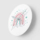 Girly rosa aqua rainbow script personlig modern mo rund klocka