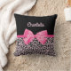 Girly Rosa Black Leopard Skriv ut Cute Bow och Nam Kudde