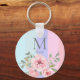 Girly Rosa Blue Stripe Blommigt Monogram Nyckelring