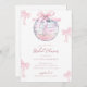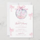 Girly Rosa Bows Shiny Disco Boll Möhippa Inbjudningar