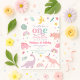 Girly Rosa Dinosaur 1:a födelsedagen Inbjudningar