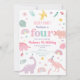 Girly Rosa Dinosaur 4e födelsedagen Inbjudningar