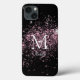 Girly rosa glitter monogram namn iPhone 13 fodral.