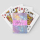 Girly rosa, persiko- och aqua holograf iridescent monogram namn och inledande spelkort. Ditt eget namn och monogram är skrivna i ett skript med elegant och rosa bakgrund. En perfekt födelsedag eller julklapp!