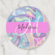Girly rosa, aqua och turkos holografiskt iridescent monogram namn och begynnelsetaggar. Ditt eget namn och monogram är skrivna i ett skript med elegant och rosa bakgrund. En perfekt födelsedag eller julklapp!