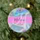 Girly rosa, persiko- och aqua holograf iridescent monogram namn och initial keramisk ornament. Ditt eget namn och monogram är skrivna i ett skript med elegant och rosa bakgrund. En perfekt födelsedag eller julklapp!