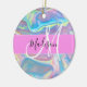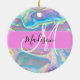 Girly Rosa Holografik Iridescent Monogram Namn Julgransprydnad Keramik