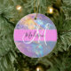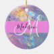 Girly Rosa Holografik Iridescent Monogram Namn Julgransprydnad Keramik