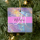Girly Rosa Holografik Iridescent Monogram Namn Julgransprydnad Keramik