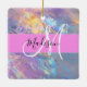 Girly rosa, persiko- och aqua holograf iridescent monogram namn och initial keramisk ornament. Ditt eget namn och monogram är skrivna i ett skript med elegant och rosa bakgrund. En perfekt födelsedag eller julklapp!