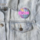 Girly rosa, persiko- och akvaholografisk iridescent monogram namn och initial knapp. Ditt eget namn och monogram är skrivna i ett skript med elegant och rosa bakgrund. En perfekt födelsedag eller julklapp!