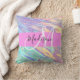 Girly rosa, persiko- och aqua holograf iridescent monogram namn och initial dekorativ kudde. Ditt eget namn och monogram är skrivna i ett skript med elegant och rosa bakgrund. En perfekt födelsedag eller julklapp!