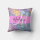 Girly rosa, persiko- och aqua holograf iridescent monogram namn och initial dekorativ kudde. Ditt eget namn och monogram är skrivna i ett skript med elegant och rosa bakgrund. En perfekt födelsedag eller julklapp!