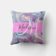 Girly rosa, lila och aqua holograf iridescent monogram namn och initial dekorativ kudde. Ditt eget namn och monogram är skrivna i ett skript med elegant och rosa bakgrund. En perfekt födelsedag eller julklapp!