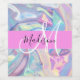 Girly rosa, aqua och turkos holografiskt iridescent monogram namn och ursprunglig märkning av vin flaska. Ditt eget namn och monogram är skrivna i ett skript med elegant och rosa bakgrund. En perfekt födelsedag eller julklapp!