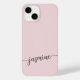 Girly Simple Minimalist Rosa Monogram Namn Namnteckning Script Anpassningsbar Personlig iphone case. Den här designen som innehåller ditt första namn i ett söt-handskrivet stil-träff med svan namnteckning typografi på rosa eller dammig rosa pastellbakgrund. Dessa är lätta att anpassa. Underbar snyggt feminin present till födelsedag, mor dag, söt 16 födelsedagsfest, för studentfest och det är för flickan som kärlek är unik snyggt sak.