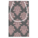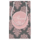 Söt i rosa och grått. Den här fuktade presentsäcksdesignen har en rosa runt ram med texten "Tack". Du kan redigera den här texten till det meddelande du väljer med hjälp av designmallen.