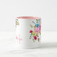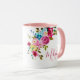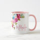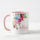 Loely Girly Rosa ros botanical blommigt anpassningsbar personlig Namn Monogram mugg. Utformning av lårbenet, rosa av ljusa vattenfärger, gult, röd blommigt arrangemang med grönt blad på vitt. Funktionsmonogram och en handskriven namn-mall. Lägg enkelt till ditt namn och monogram.. Underbar romantisk personlig för flickor och kvinnor för födelsedag eller tillfälle.