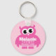 Girly rosa uggla tecknad-nyckelkedja med namn nyckelring
