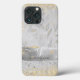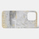 "Girly Silver Glitter-juveler med Initialer och Ditt namn iPhone 13 Fodral." Elegant glitz och glam-telefonfodral med silvery bokeh glitter-gnistra-penseldrag parade med Guld av vitt diamantdamm och juveler. Ett grönt mönster i löv i mjukt silver-grått fylls av med en vattentorkare och penseldrag som har varit grafiskt designat in i gyllene glitter. Grafiskt designad av en internationellt licensierad konstnär, Audrey Jeanne Roberts, upphovsrätt.