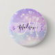 Girly och söt knapp med en färgstark rosa, lila, lilac och blått enmajsregnbåge med gnidig bakgrund. Ditt eget namn och monogram är skrivna i ett handskript med elegant med en lilac lila Unicorn-målpensel--bakgrund för rand. En perfekt födelsedag eller julklapp!