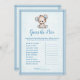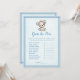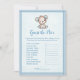 En bra brun och blå björn i baby för en pojkdusch. Gissa det Prisa babyduschspelet. Blå filt med blå sydd kant gräns mot bakgrund. Mallar finns på baksidan.