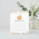 "En liten pumpa är på väg. Fira med detta barnkartong-pumpatemaa för baby shower-fest! Vattenfärg söt cartoon kawaii pumpa med höst hatt (keps) och höstlöv. På baksidan av kortet finns höstlöv.