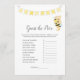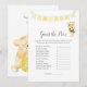 Ett roligt för babyduschen är Gissa det prisa spelet. Det här spelet har en banderoll överst på gulten och en nalle med ett bin. På motsatt sida lutar en nalle på en honungsfat som tittar på ett honungsbin med mallar.