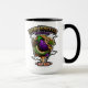 Grop, den nu-officiell maskoten av Retro Hangover, sprängde sig in på det här jumbo 15 oz. Tvåfärgad färg mugg, äggplanta och allt!
