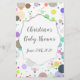 Det här babyduschkortet har ett skript med modernt typsnitt på multifärgadens bakgrund, perfekt för pojke, flicka eller en överraskning! Använda det här kortet för din gender visar party!