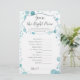 Det här babyduschspelkortet har ett modernt typsnitt på blå punkter, perfekt för pojke!