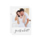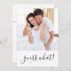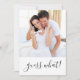 Ladda upp fotot för meddelande om gravid till detta enkla kort och det här snyggten. Utformningen har hand- och könsneutrala, svarta och vita färg-paletter. Den är skriven med gissa vad! på framsidan och "vi förväntar oss" på baksidan. Mallen är inställd för att du ska kunna lägga till ditt personlig-meddelande med förfallodatum för baby och signering med ditt eller dina namn.