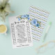 Gissa vem Blåa blommor Möhippa-spelkort Flygblad