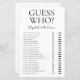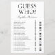 Det här moderna bröllops-spelarket från Guess Who? är perfekt för vilken bröllopsfest som helst. Det här roliga och enkla spelet kommer säkert att ge massor av skratt under bröllopsfesten. Ge helt enkelt ett ark till varje gäst (glöm inte pennorna) och låt roligheten börja! Du kommer bli förvånad över hur mycket folk vet om bruden och brudgummen. För att anpassa det här spelet, välj "Anpassa den här mallen" och skriv in brudens och brudgummens namn.
