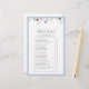 Lägg till en lekfull twist till din möhippa med det här förfinade "Gissa vem"-spelet - där gästerna försöker avgöra vem som passar bäst för varje personegenskap. Med sina blommigtar för elegant och dammiga blåa accenter kompletterar det ett tankeväckande arrangemang samtidigt som det erbjuder lättunderhållning för samlingar med olika ålders- eller samstadier. Perfekt för isbrytare, sammanfoga station eller inkludera ställe i inställningarna för sittande samtal som en konversationsstart. Matchning av delara redigeringar och personliger finns på begäran. Copyright Anastasia Surridge, alla höger reserverade.