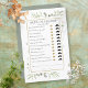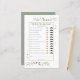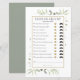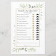 Med känsliga akvarellblad med grönska kan detta roliga bröllopsdusch-teparty-spel anpassas med dina egna gissa vem-frågor. Designad av Thisisnotme©